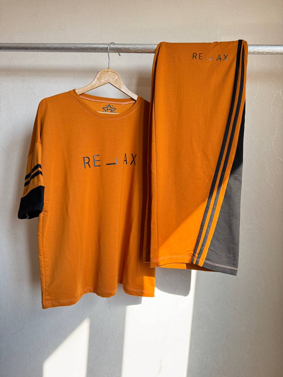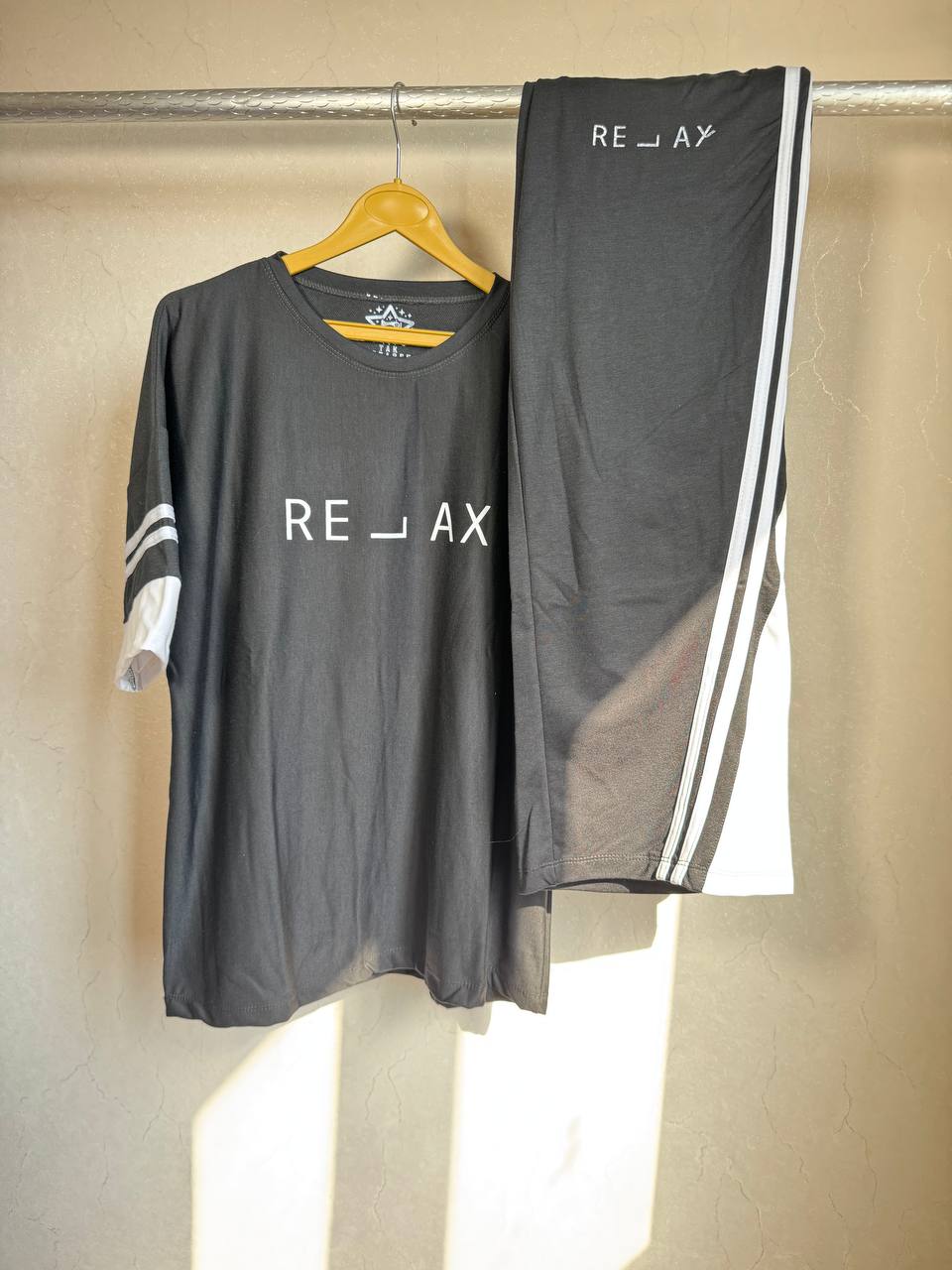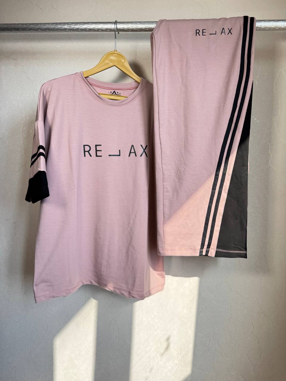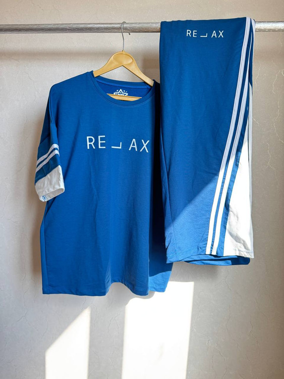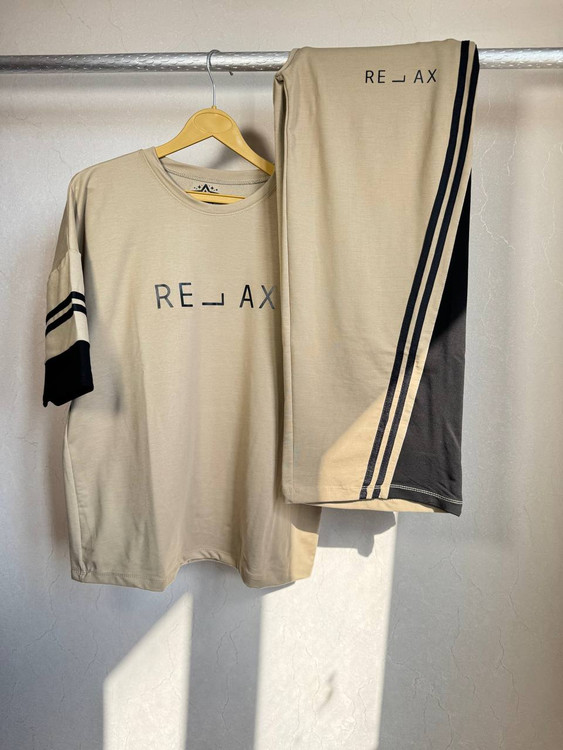 - طراحی: تیشرت لانگ با نوشتهی "RELAX" + شلوار بگ آزاد