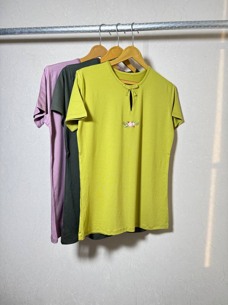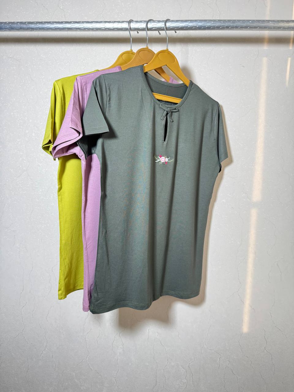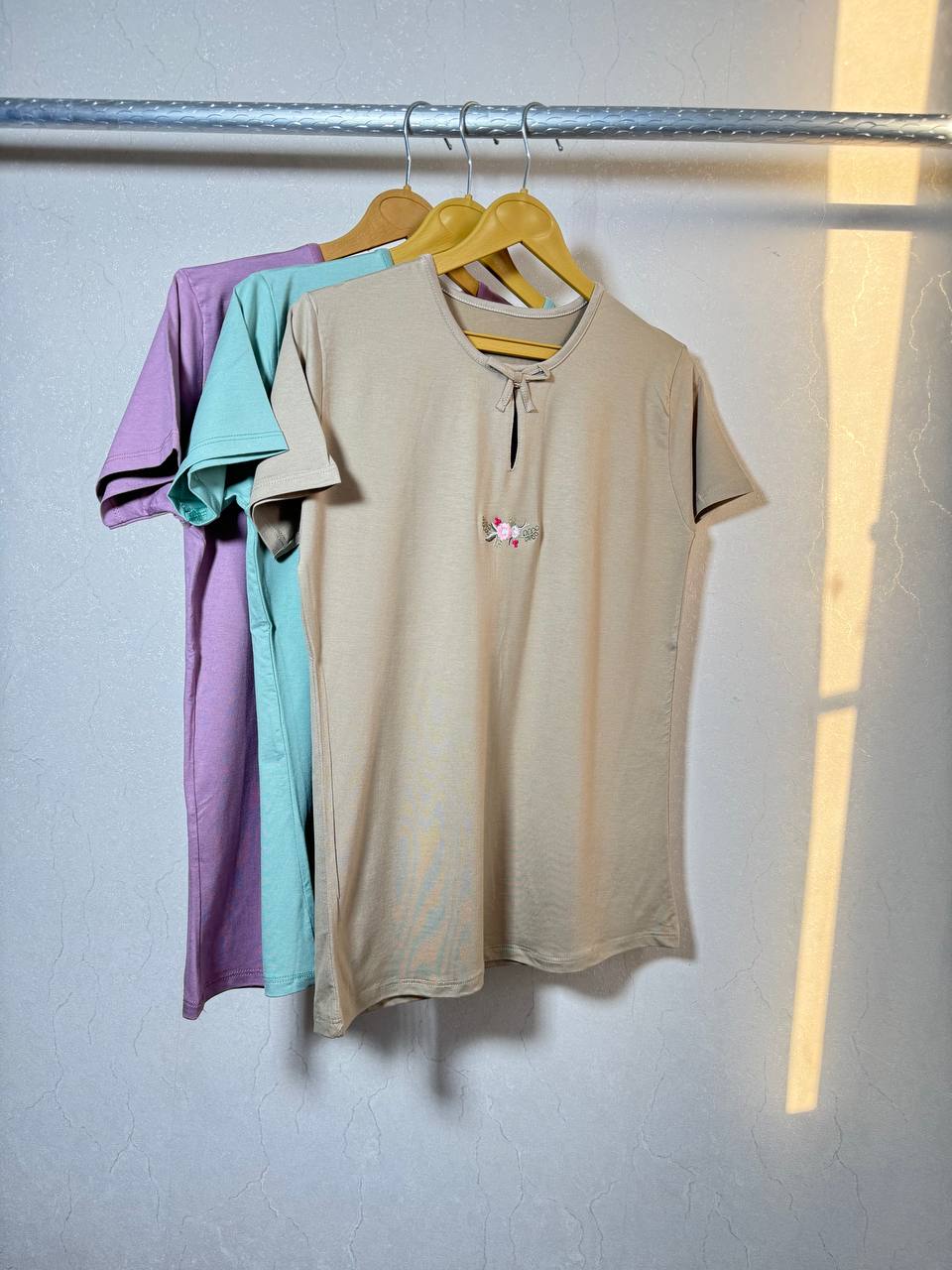تیشرت زنانه ویسکوز با گلدوزی ظریف – راحتی لطیف در رنگهای متنوع