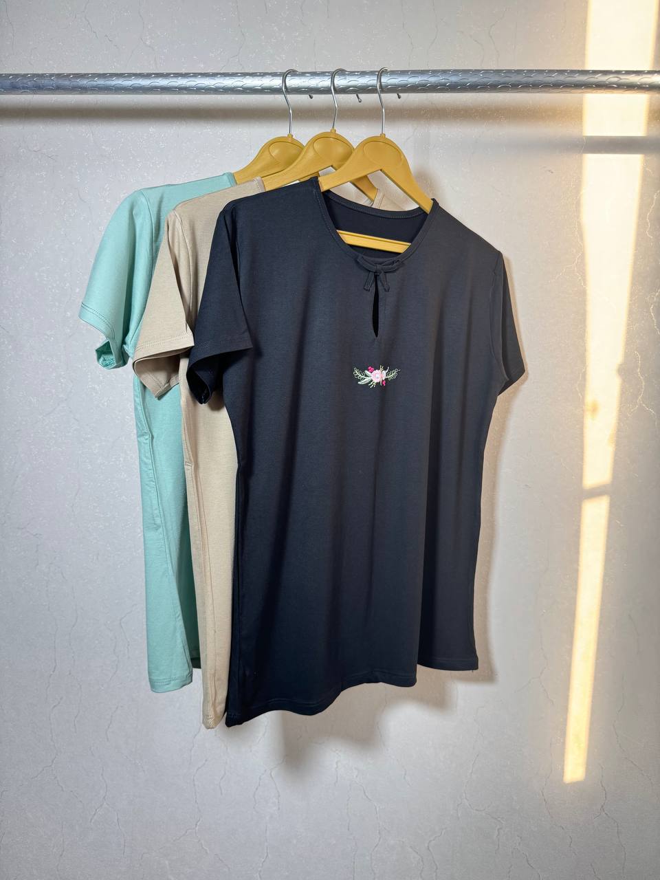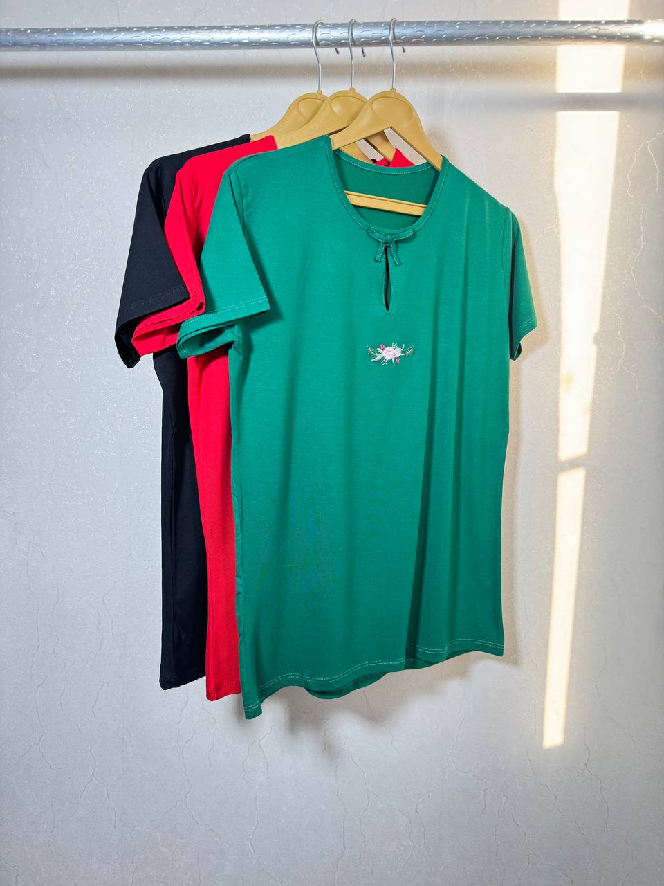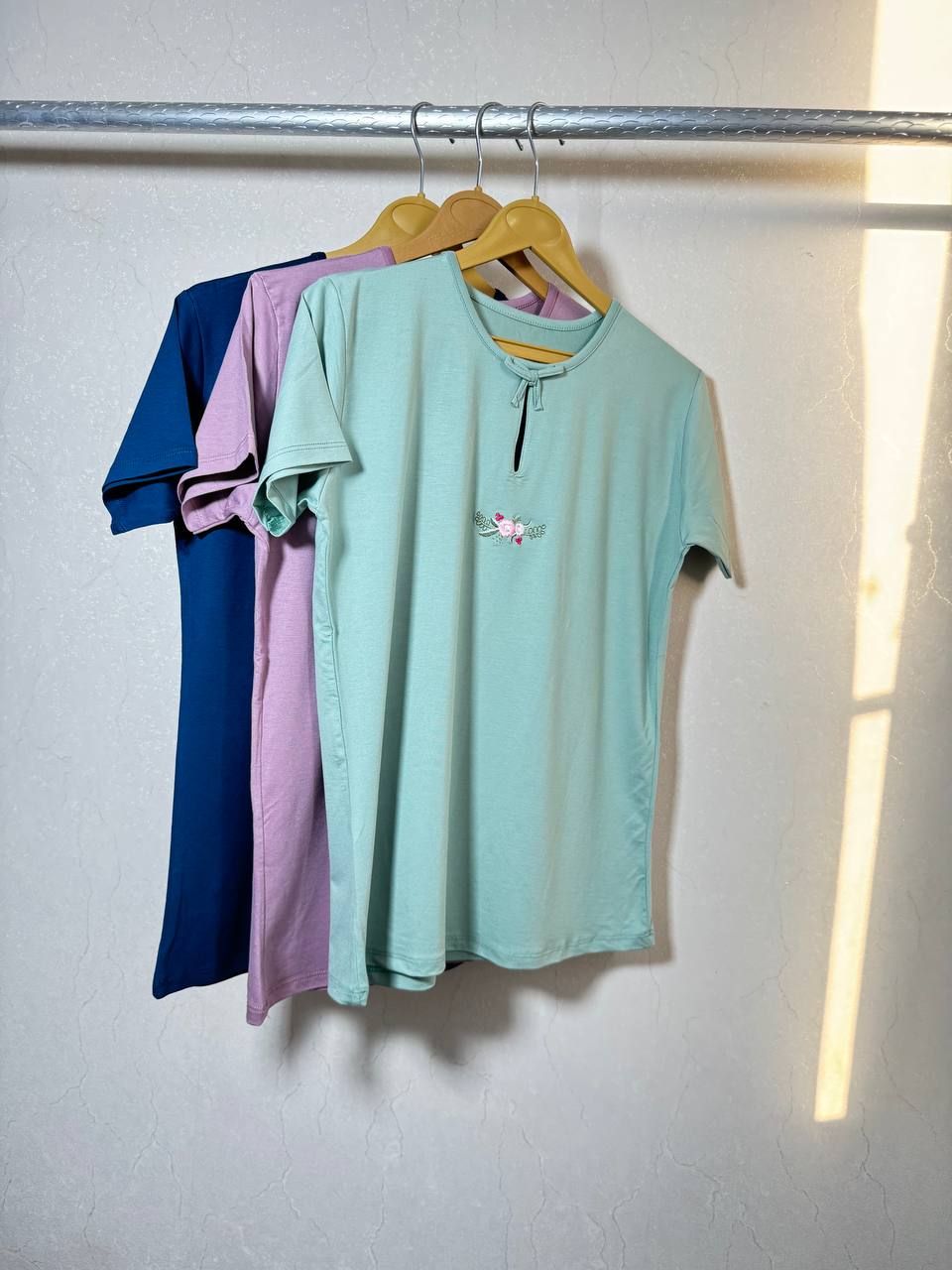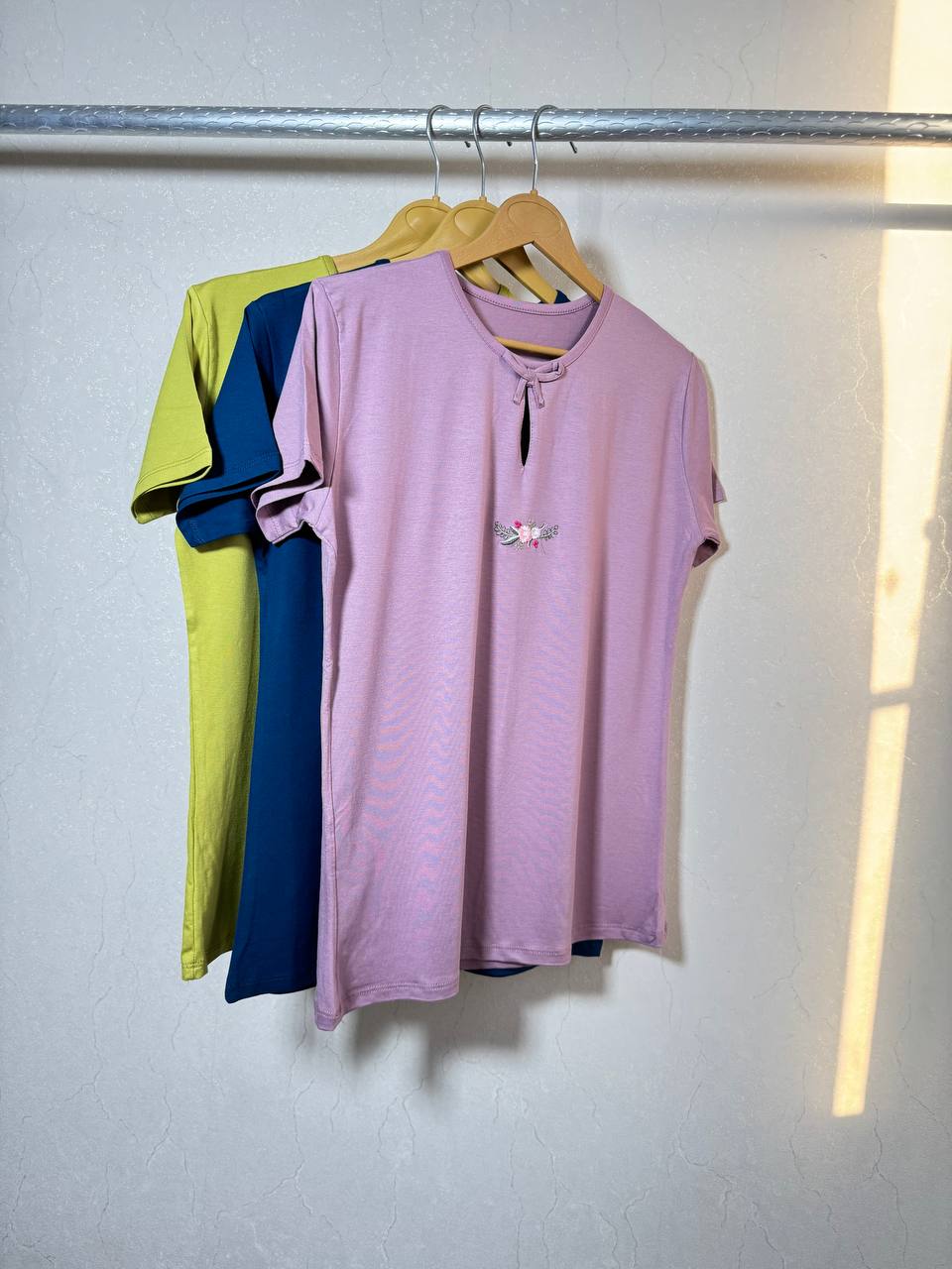تیشرت زنانه ویسکوز با گلدوزی ظریف – راحتی لطیف در رنگهای متنوع