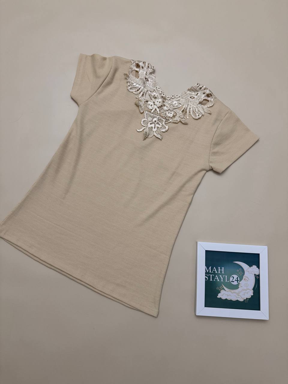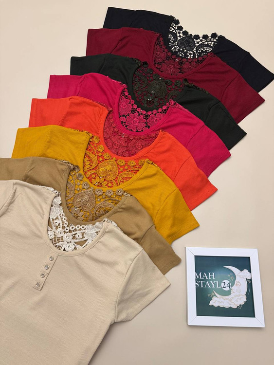 🧵 تیشرت زنانه کبریتی پشت گیپوری | لطافت، زیبایی و راحتی در یک نگاه