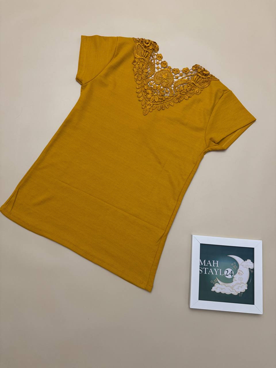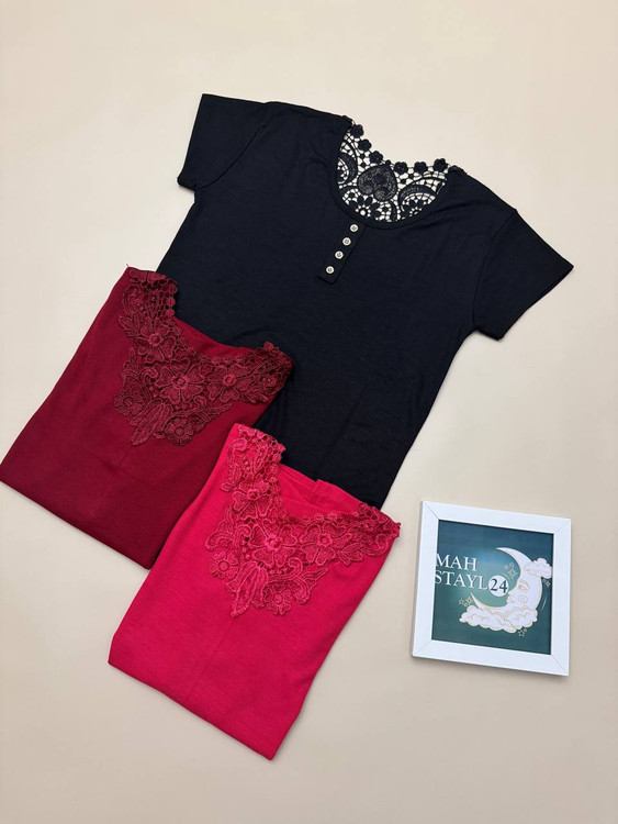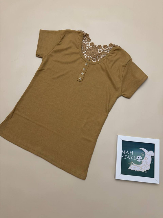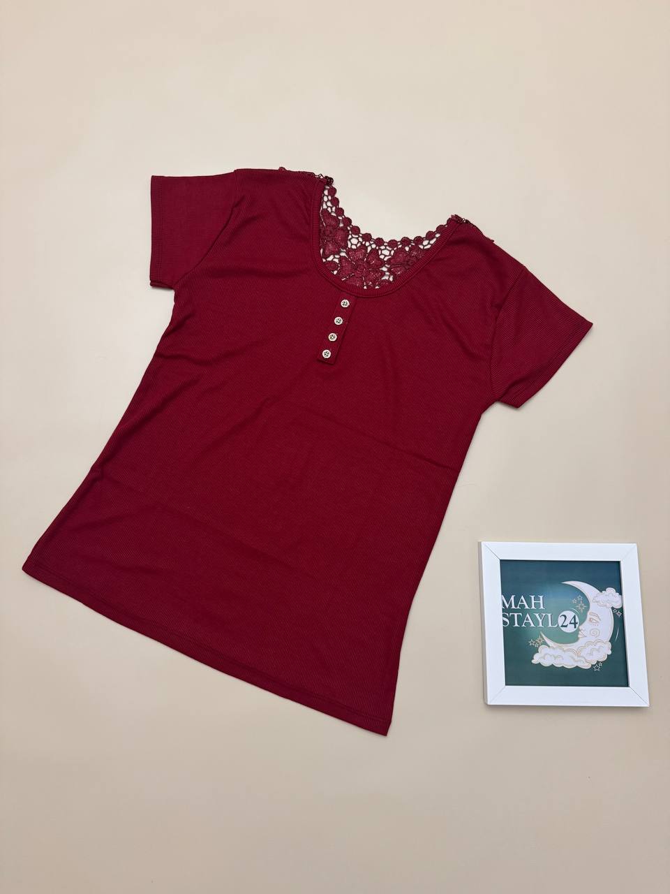 تیشرت زنانه کبریتی پشت گیپور | لطیف، خوشفرم، مناسب استایل روزمره