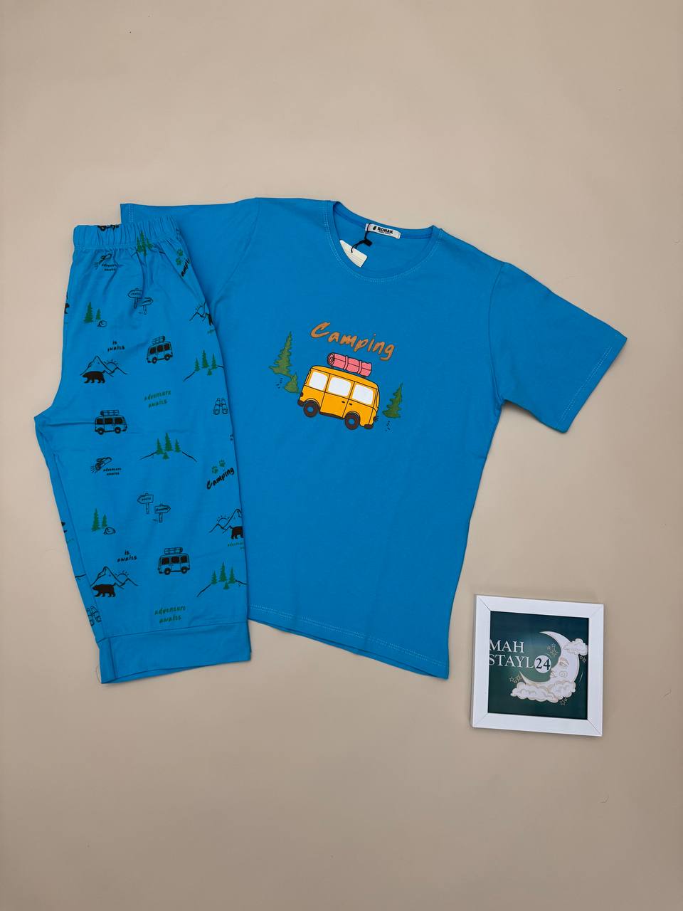 ست زنانه تیشرت و شلوارک نخ پنبه فانتزی