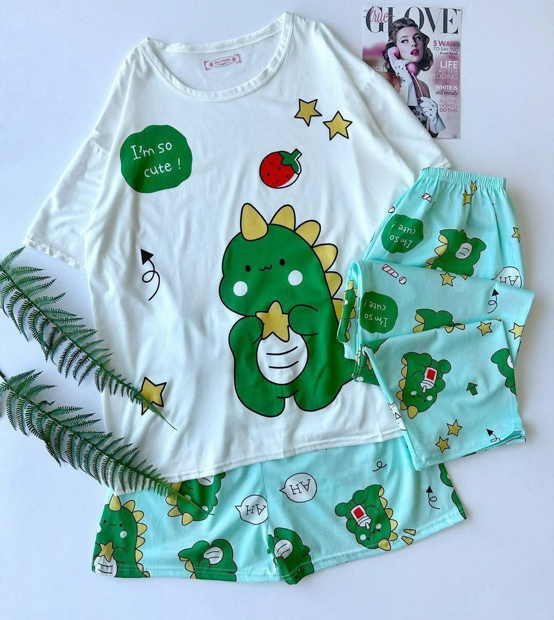 ست سه تیکه دایناسوری گیاهی وارداتی نرم و لطیف